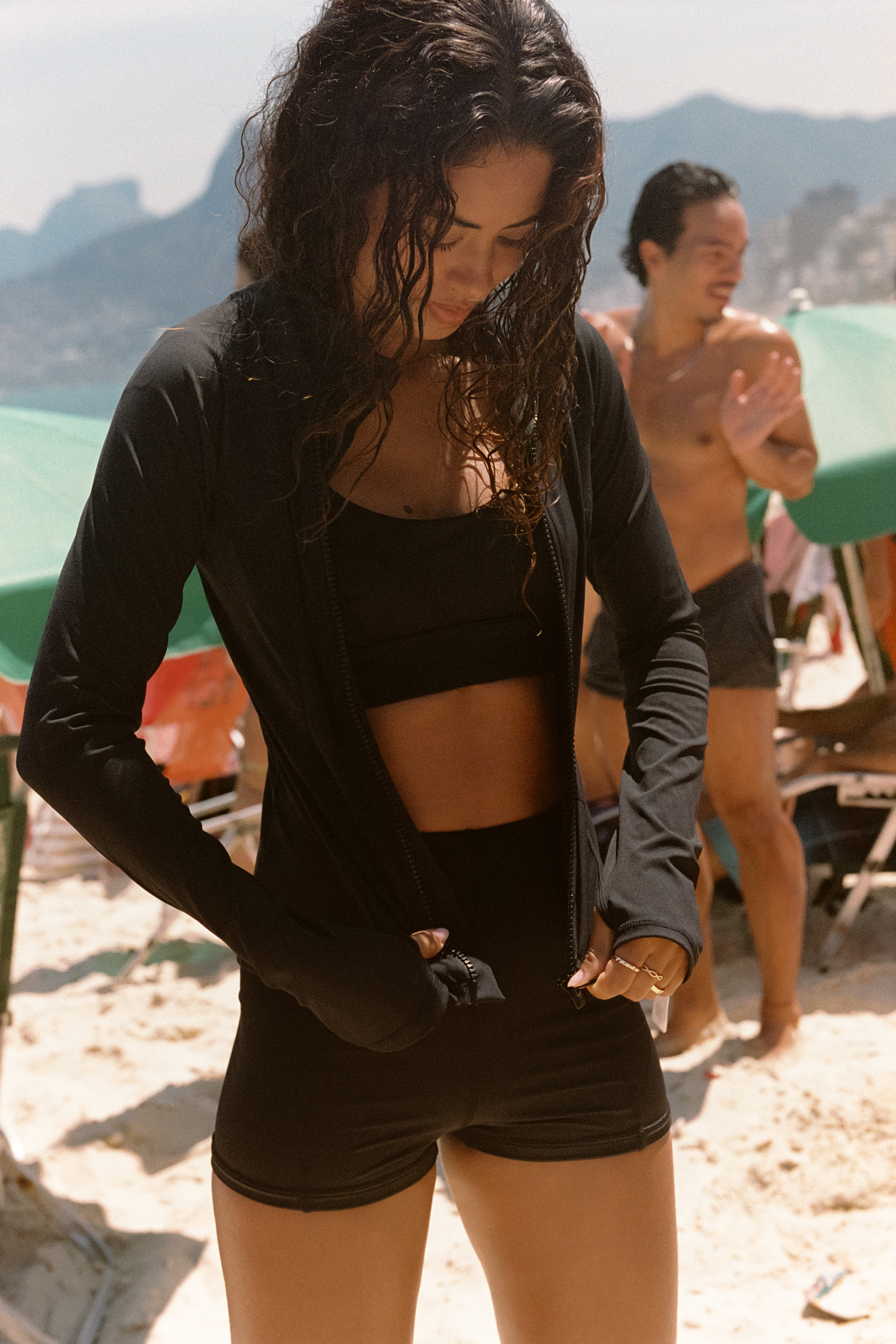 I've been looking for a zip-front rashie that gives me full coverage for ages and was so glad to see this piece appear in my feed. I love the high neck and that the fabric is UPF50+. Also love the thumb holes. The Sheila branded zipper tag is a stylish addition and makes this feel more designer than a lot of other rashies on the market. I wear this in and out of the water — while the fabric is supportive and thick, it's breathable and doesn't make me feel hot in the full sun. The fit is firm so if you have a large bust or are between sizes, I'd recommend sizing up. The quality is top notch and it's worth the investment.
